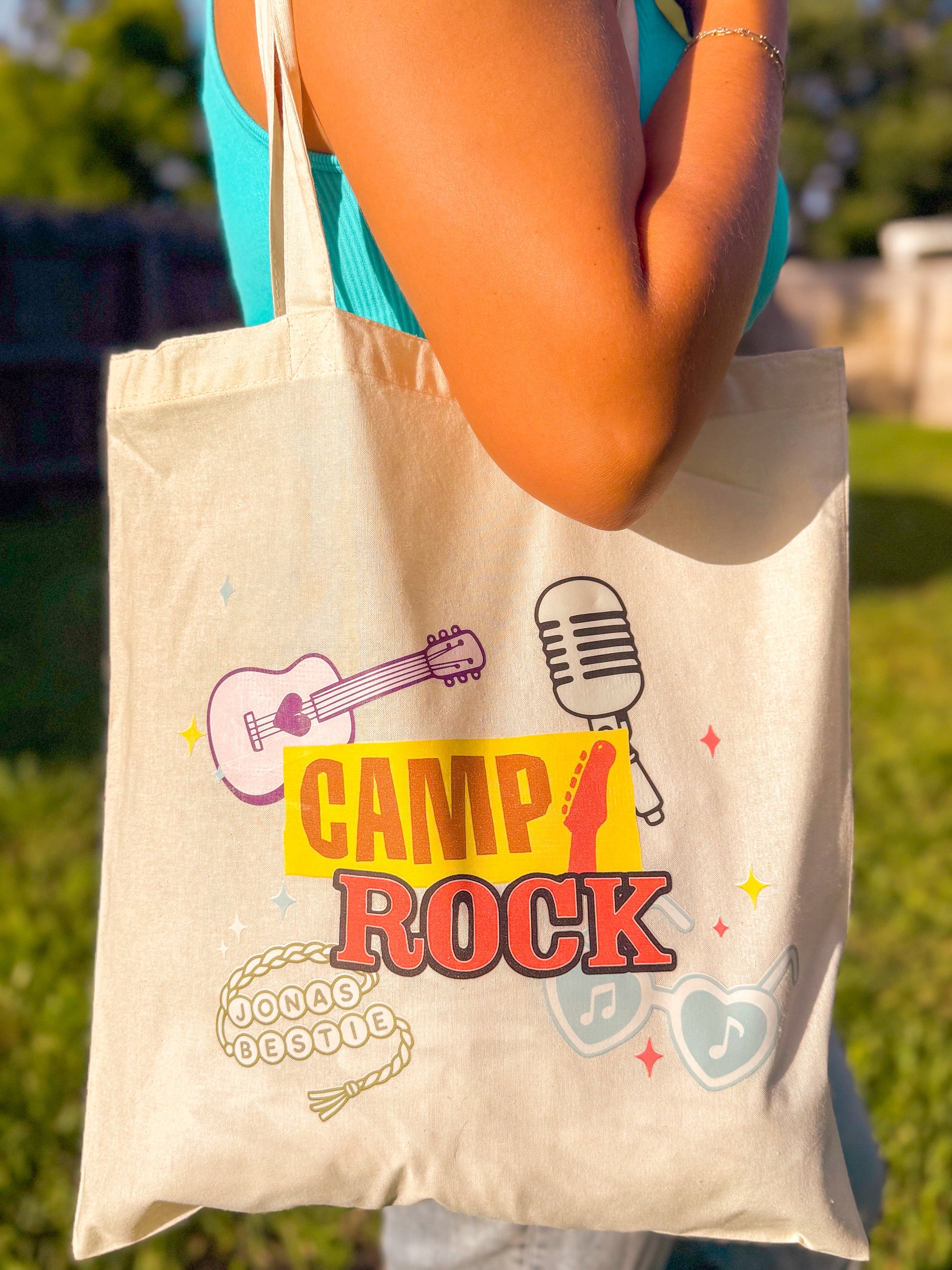 Made from 100% cotton canvas, the Camp Bestie Tote is lightweight, durable, and perfect for all your adventures. Inspired by Camp Rock nostalgia, this tote is designed to celebrate your inner fangirl with style and heart.