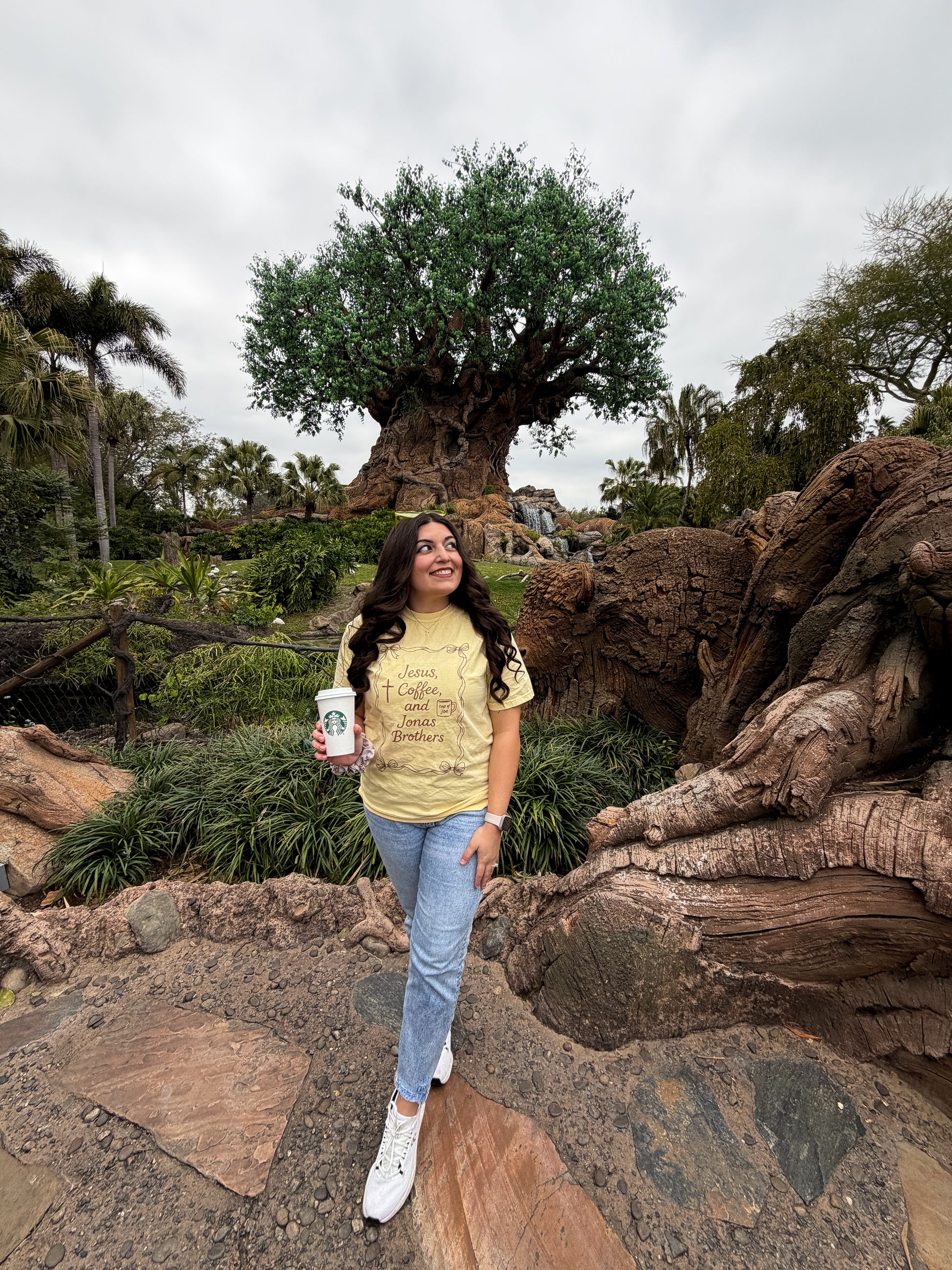 This buttery yellow tee combines faith, caffeine, and fandom, because some mornings just call for Jesus, Coffee, and the Jonas Brothers. Whether you’re headed to church, brunch, or a concert, it’s the perfect conversation starter and everyday favorite.